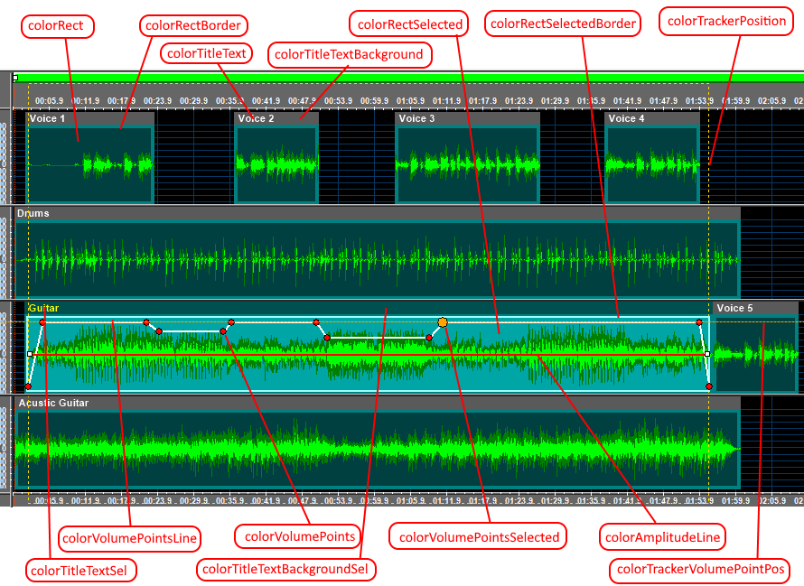 Color used for rendering selected volume points. This default setting can be modified on a "per item" basis through the TracksBoard.ItemWaveColorsSet method |